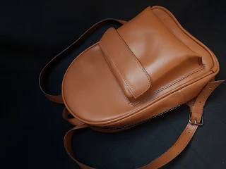 Simplu,elegant, classy, trei caracteristic principale dacă ar fi să-l descriu pe scurt,realizat din piele naturala maro castan roșiatic pe exterior, maro gălbui pe interior,da! tot piele naturala, dublat pentru o ținută eleganta impozanta, Metoda de coasere la imbinare a parti din față este cu cheder tubular(pipeing) Cheder confecționat manual, carei ofera acel plus de eleganța rucsacului.